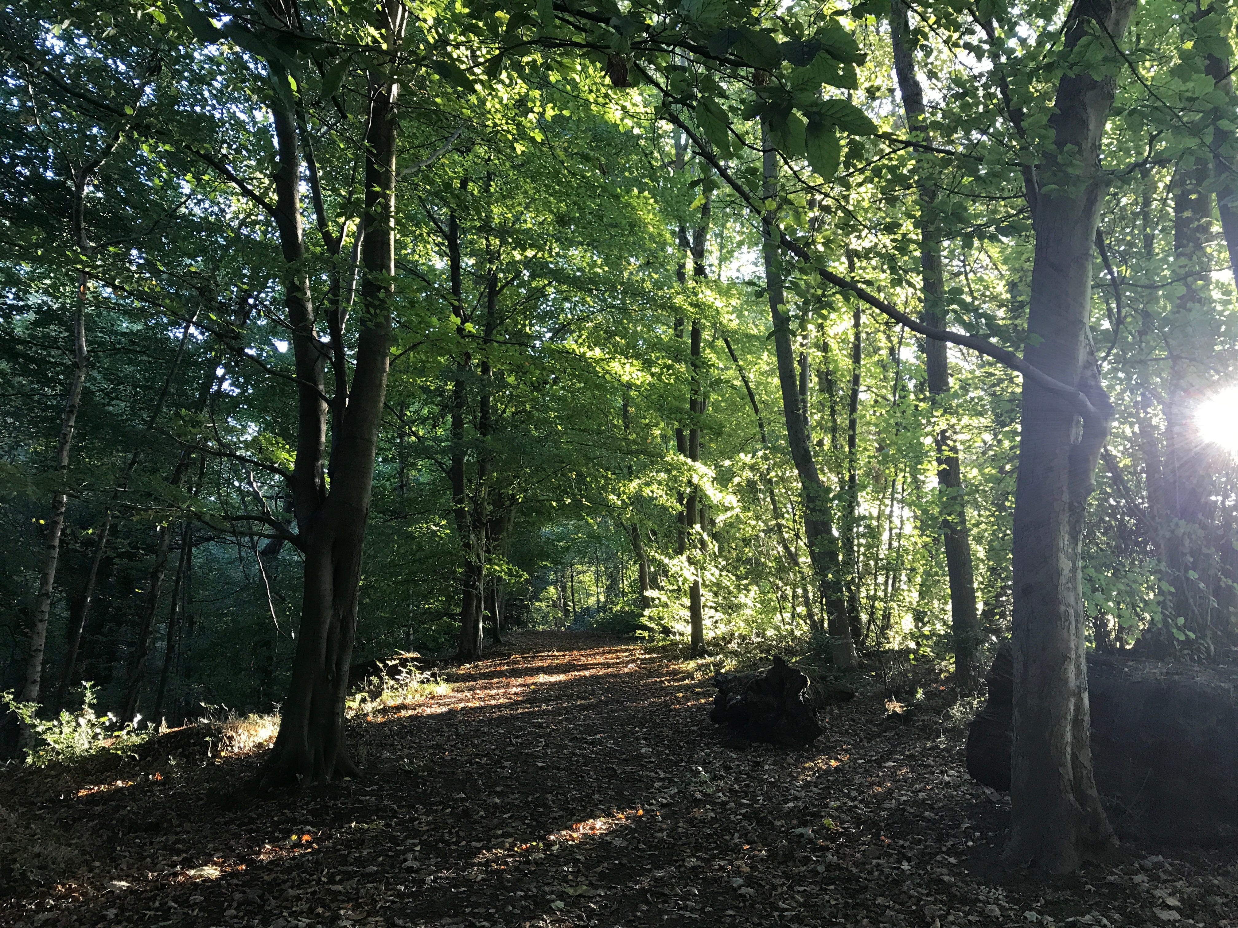 Trying to identify every wildflower and shrub I see: bluebells and goosegrass, buttercups, dandelions, forget-me-nots, elderflower, wild garlic, little yellow flowers that look like trumpets, nettles, dock leaves.